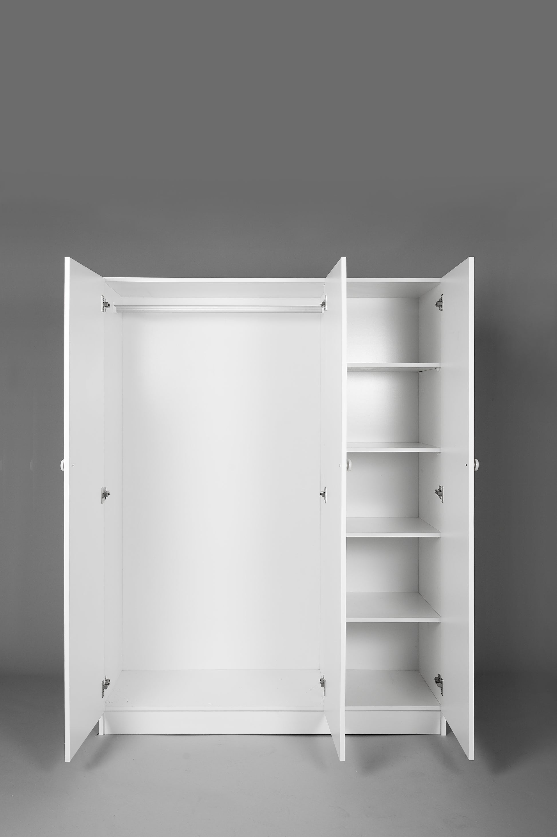 The 3-door Hang & Pack Wardrobe offers a practical and durable storage solution. Its sleek design is perfect for maximizing space in any room with an additional option for a top cupboard.